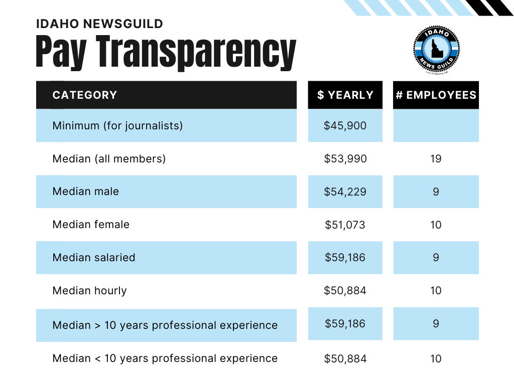 That’s why we publish data on what journalists at the Idaho Statesman are paid. This information will live on our website, IdahoNewsGuild.org, for everyone to see.